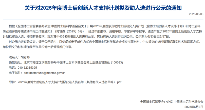 日前,全国博士后管委会办公室公布了2025年度博士后创新人才支持计划(简称“博新计划”)拟资助人员名单,医工交叉科创中心王开洋博士后成功入选!