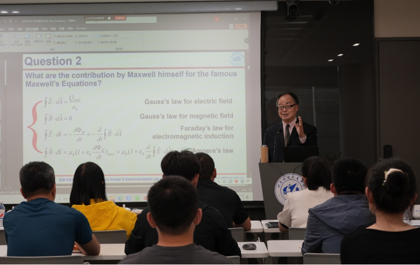 讲座中,刁教授以生动具体的案例,从“为什么海拔越高温度越低?”、“麦克斯韦方程组究竟描述了什么?”、“迈克尔逊干涉仪实验的奥秘何在?”等问题出发,深入浅出地展示了如何运用问题导向型兴趣教学激发学生主动探索的精神。他强调,优秀的课堂应该以有趣的真实问题为切入点,激发学生的求知欲望,并通过实践探索深化理论理解。刁教授还分享了“疑问—探索—验证”三段式教学脚本及兴趣触发机制的课堂实践经验,并展示了物理教学与跨学科互动结合的创新案例,有效促进学生综合素质的全面发展。