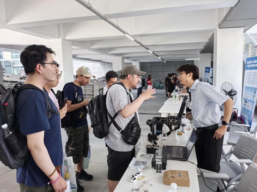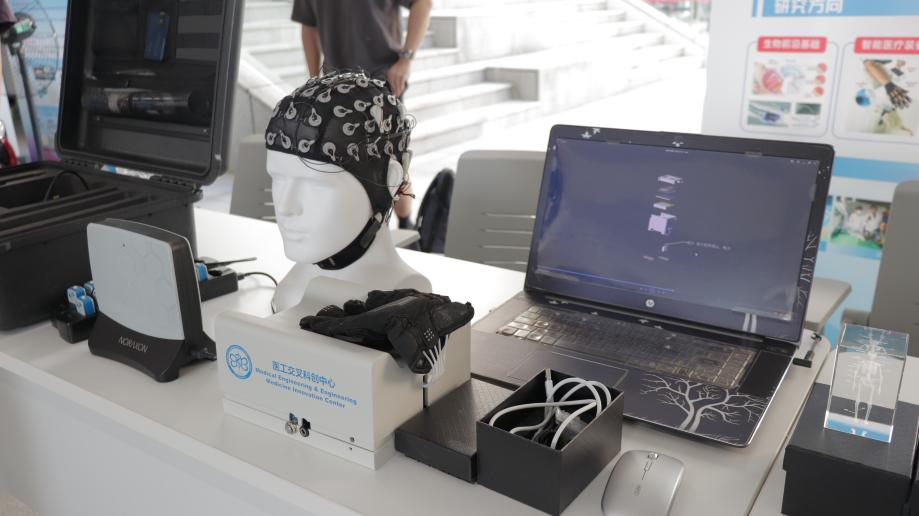 医工交叉展台,多项前沿设备对新生及家长集中开放。电针仪、脑电仪、肌电仪、智能康复手套、智能假人等一一亮相。亲手体验智能康复手套的精准控制,认识电针仪、肌电仪妙用,感受智能假人触感……同学们惊叹于可触可感的医工创新。